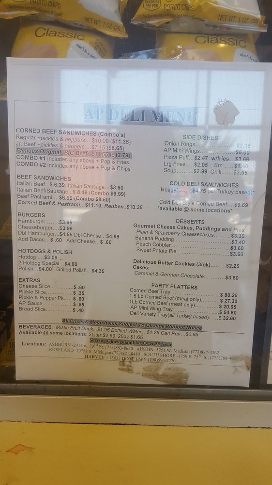 AP Deli is a hidden gem located in the heart of Chicago, offering a wide range of deli favorites with a modern twist. This deli offers convenient delivery and takeout options, perfect for those on the go. With the ability to make reservations and accept credit cards, AP Deli ensures a seamless dining experience. The ambiance is perfect for groups and families, with outdoor seating available. Catering services are also offered for special events. The menu features a variety of dishes to satisfy every palate, from classic deli sandwiches to gourmet salads. Don't forget to indulge in a drink from their selection of alcoholic beverages. AP Deli truly stands out as a versatile dining option with something for everyone.